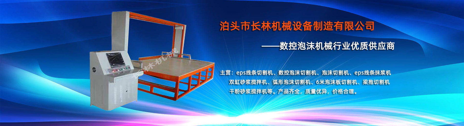 泊頭市長(zhǎng)林機(jī)械設(shè)備制造有限公司座落于河北省泊頭市開發(fā)(fā)區(qū),地處北京、天津、濟(jì)南、石家莊中心位置。京滬高速、京滬鐵路、106國道、104國道穿行于本市,交通便利。 本公司是集多功能數(shù)控泡沫切割機(jī)的自主研發(fā)(fā)、生產(chǎn)、銷售和服務(wù)于一體的企業(yè),eps線條設(shè)備,數(shù)控泡沫切割機(jī),發(fā)(fā)泡陶瓷切割機(jī),eps線條切割機(jī)銷往全國各地,并開辟了國際合作的廣闊渠道。創(chuàng)(chuàng)新不斷的長(zhǎng)林?jǐn)?shù)控機(jī)械有限公司經(jīng)過幾年的不斷研究,完善了建筑裝飾構(gòu)件的配套設(shè)備和自動(dòng)化設(shè)備,由過去手工生產(chǎn)到半自動(dòng)生產(chǎn)發(fā)(fā)展到現(xiàn)在的CNC控制的全自動(dòng)零誤差數(shù)控泡沫切割機(jī)床。不但讓客戶在交貨期上面爭(zhēng)取了時(shí)間而且···